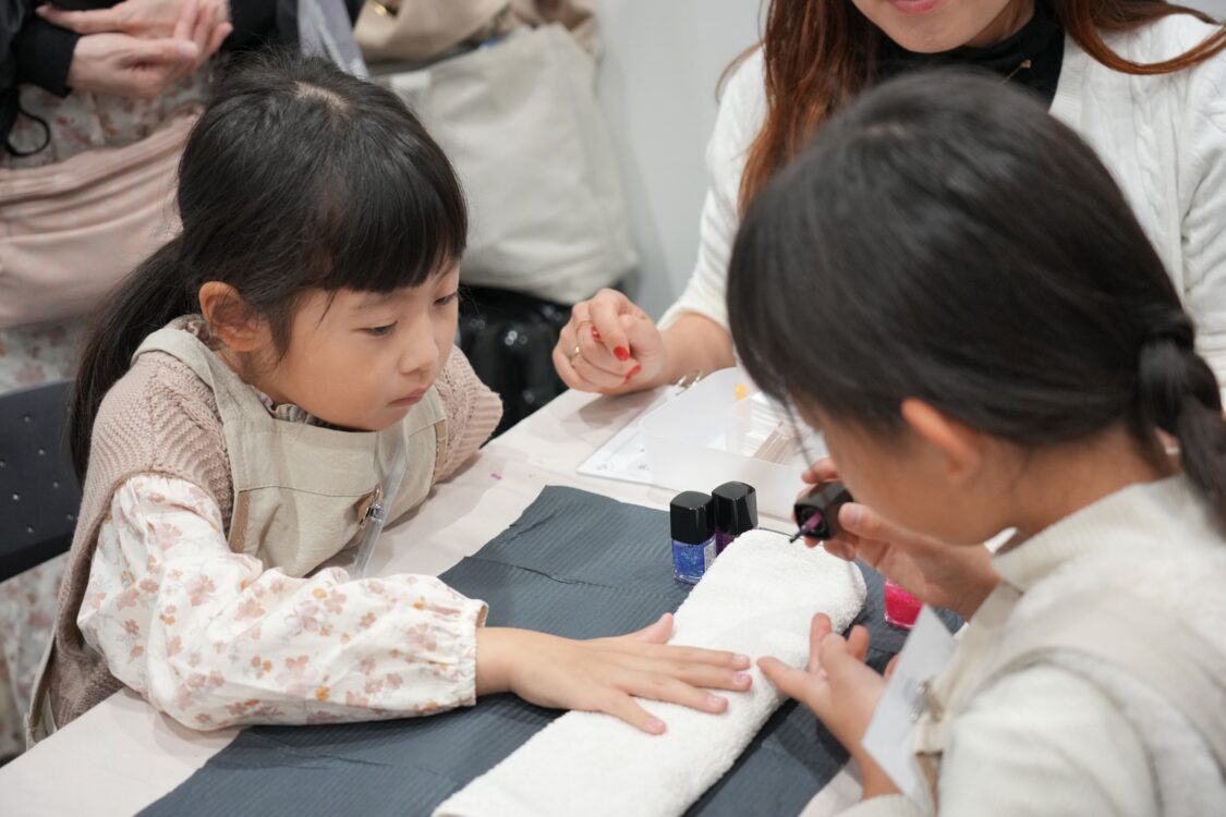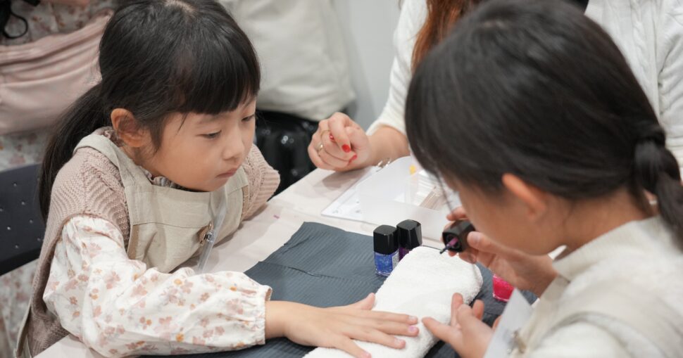「水性ネイルポリッシュ」というお水が主成分のマニキュアを使用して、2人1組でお互いに施術してみよう!