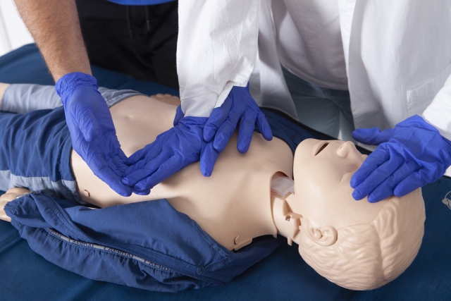 胸骨圧迫とは、心臓がとまってしまった人の胸をギュッギュッと押して、血を流してあげる方法のこと。